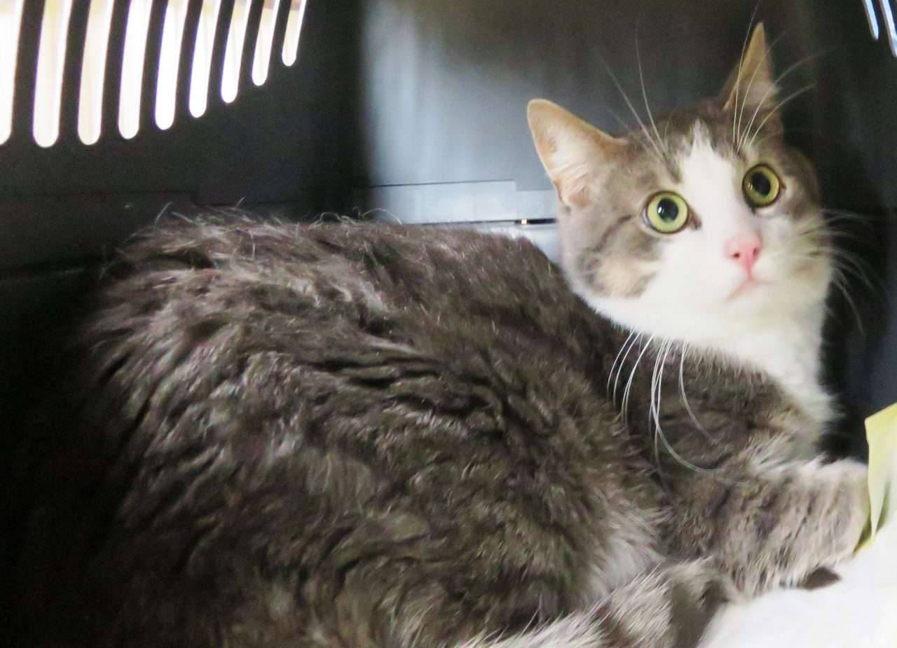 „Blue“ ist ein bildhübscher Kater mit silbergrau-weißem Fell und vermutlich