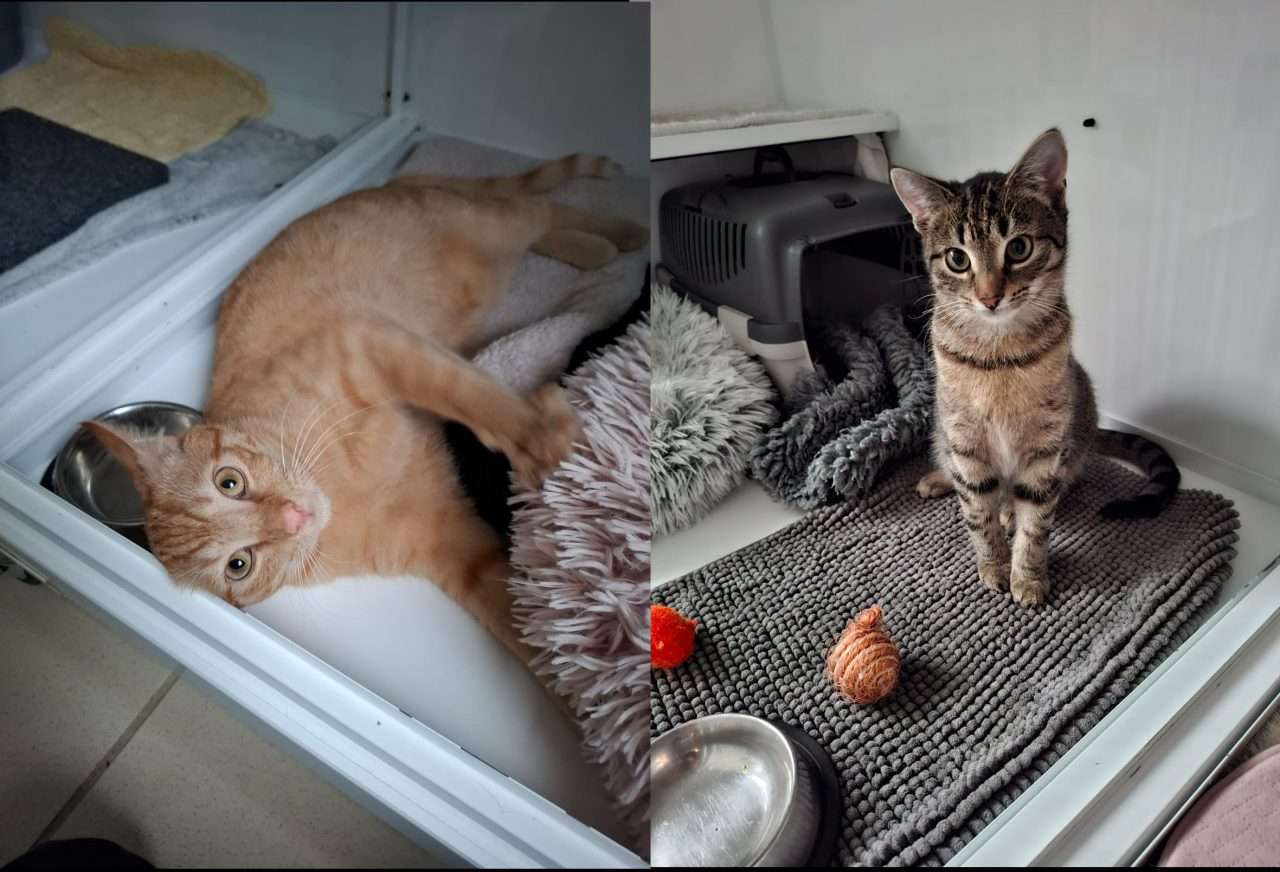 Die beiden ca. sechs Monate jungen Geschwister Ron (rot) und Hermine (graugetigert) kamen zu uns, weil sich die Lebensumstände der Vorbesitzer sehr drastisch geändert haben und sie den beiden leider nicht mehr gerecht werden konnten.